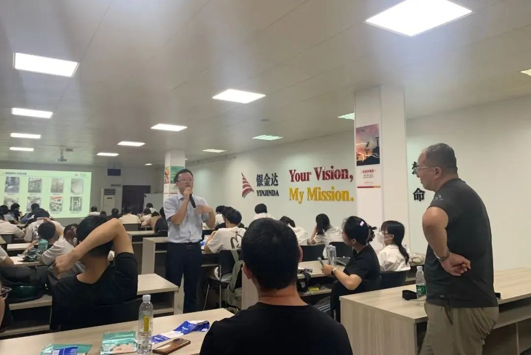 鄭州大學材料學院120名學生,在老師的帶領下先后到達銀金達開展兩期實習活動。校企雙方明確了在新材料研發、人才培養等方面的合作方向。在校企雙方精心組織下,見習活動以講師授課、現場培訓、總結分享等多樣化形式展開。使學生了解銀金達聚酯材料生產工藝流程與銀金達完整產業鏈優勢,把理論知識和實際生產情況結合起來,對工作崗位有更直觀深入的了解和認識,提升了企業品牌影響力,為精選優秀畢業生做好鋪墊。