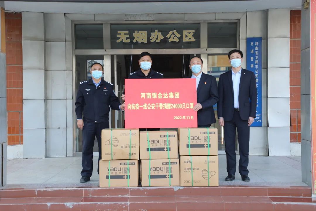 在當前疫情嚴峻復雜的形勢下,公安干警不懼風險英勇戰斗在疫防一線,為守護一方平安和抗擊疫情作出了重要貢獻。銀金達集團黨委書記、董事長閆銀鳳為助力公安干警抗擊疫情,委托集團黨委副書記、工會主席楊鳳瑞和彩印公司副總經理劉廣斌到衛輝市公安局、衛輝市交警大隊慰問,并捐獻防疫口罩2.4萬只,表達銀金達干部職工的熱誠問候。