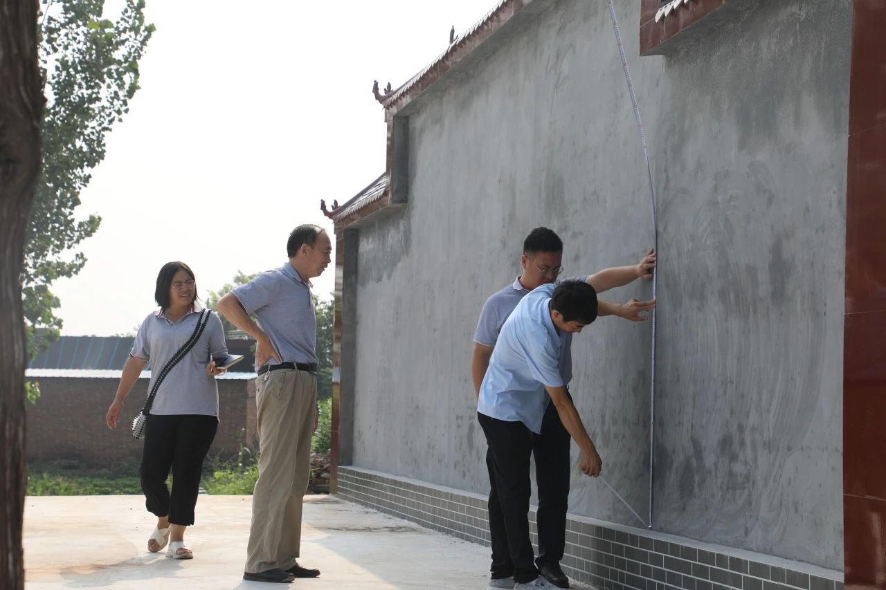 在王二莊村文化墻和文化活動廣場,楊鳳瑞一行仔細(xì)查看了項目建設(shè)情況,已建成文化廣場面積662平方米,文化墻立體面積45平方米,楊鳳瑞對項目建設(shè)質(zhì)量表示滿意,并對兩個場地的后續(xù)建設(shè)方案進(jìn)行討論,經(jīng)現(xiàn)場測量,確定了文化墻和廣場背景墻的宣傳設(shè)計規(guī)劃。